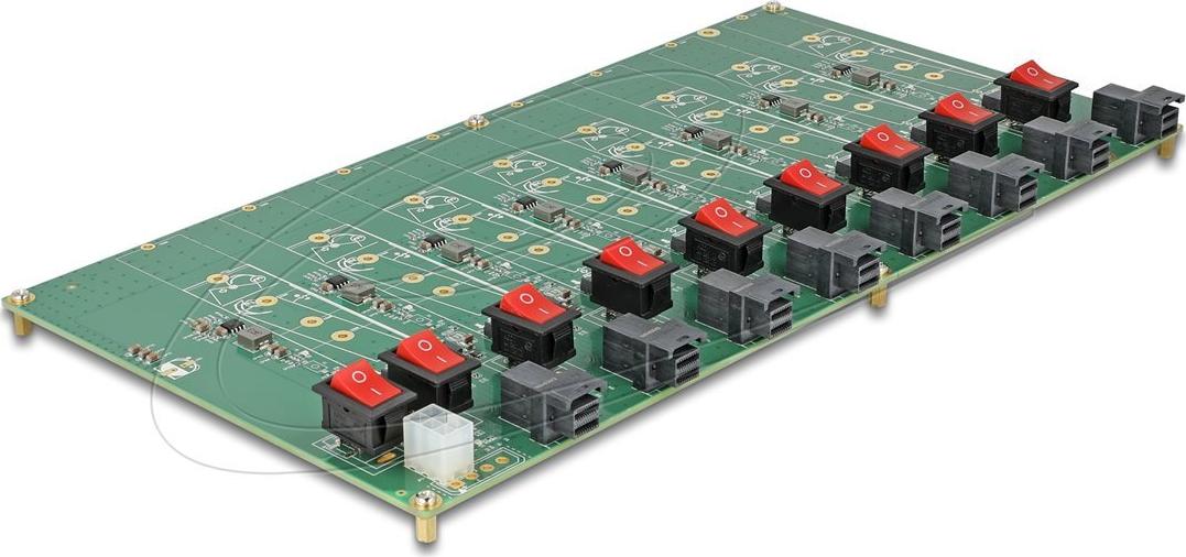 Der Delock-Schnittstellenadapter bietet eine vielseitige Lösung für den Anschluss von bis zu 8 M.2-NVMe-Laufwerken und ist ideal für verschiedene Speicheranforderungen. Diese Testplatine verfügt über einen SFF-8643-Anschluss, der eine nahtlose Integration in Systeme mit SAS-Schnittstelle gewährleistet. Das Design umfasst Ein-/Ausschaltfunktionen sowie 8 LED-Anzeigen für eine einfache Überwachung. Die Kompatibilität mit mehreren Festplattenformaten, darunter M.2 2280, 2242, 2230, 2260 und 22110, bietet Flexibilität für verschiedene Speicherkonfigurationen. Mit einem Betriebsbereich von 5 °C bis 50 °C und einer unterstützten Luftfeuchtigkeit von 0 % bis 90 % ist dieses Produkt für den zuverlässigen Einsatz in verschiedenen Umgebungen ausgelegt.