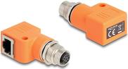 Delock M12 Adapter A-kodiert 8 Pin Buchse zu RJ45 Buchse Cat.5e mit Befestigungsloch 90° gewinkelt orange (60668)