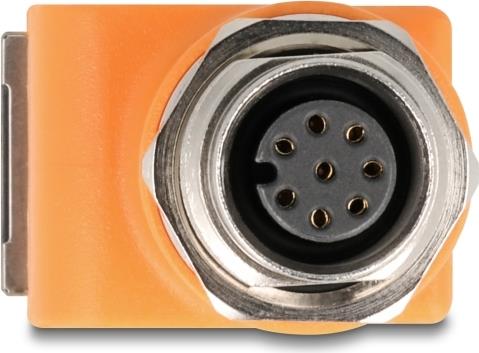 • Delock M12 Adapter A-kodiert 8 Pin Buchse zu RJ45 Buchse Cat.5e mit Befestigungsloch 90° gewinkelt orange (60668)