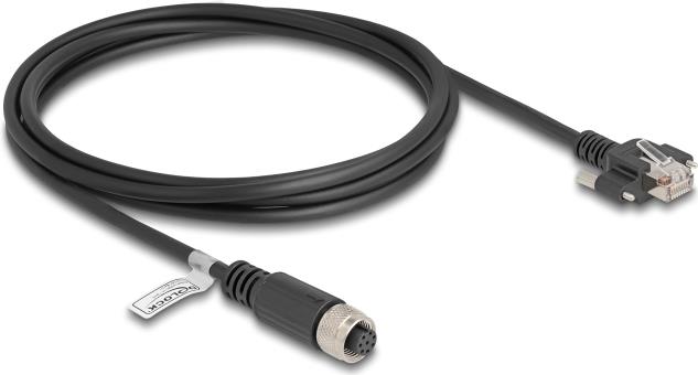 Delock M12 Kabel A-kodiert 8 Pin Buchse zu RJ45 Stecker mit Schrauben Cat.5e FTP 2 m (80425)