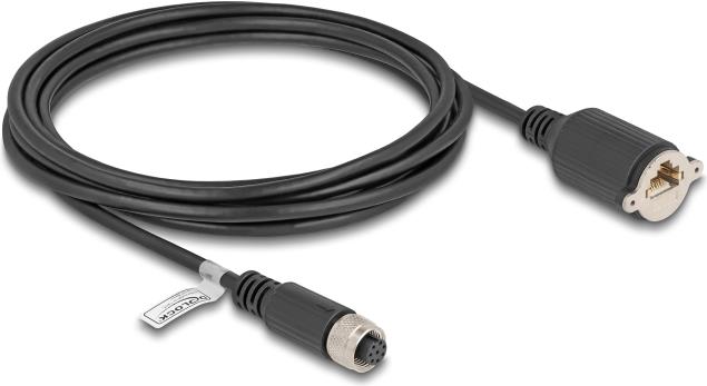 • Delock M12 Kabel A-kodiert 8 Pin Buchse zu RJ45 zum Einbau Cat.5e FTP 3 m (80438)