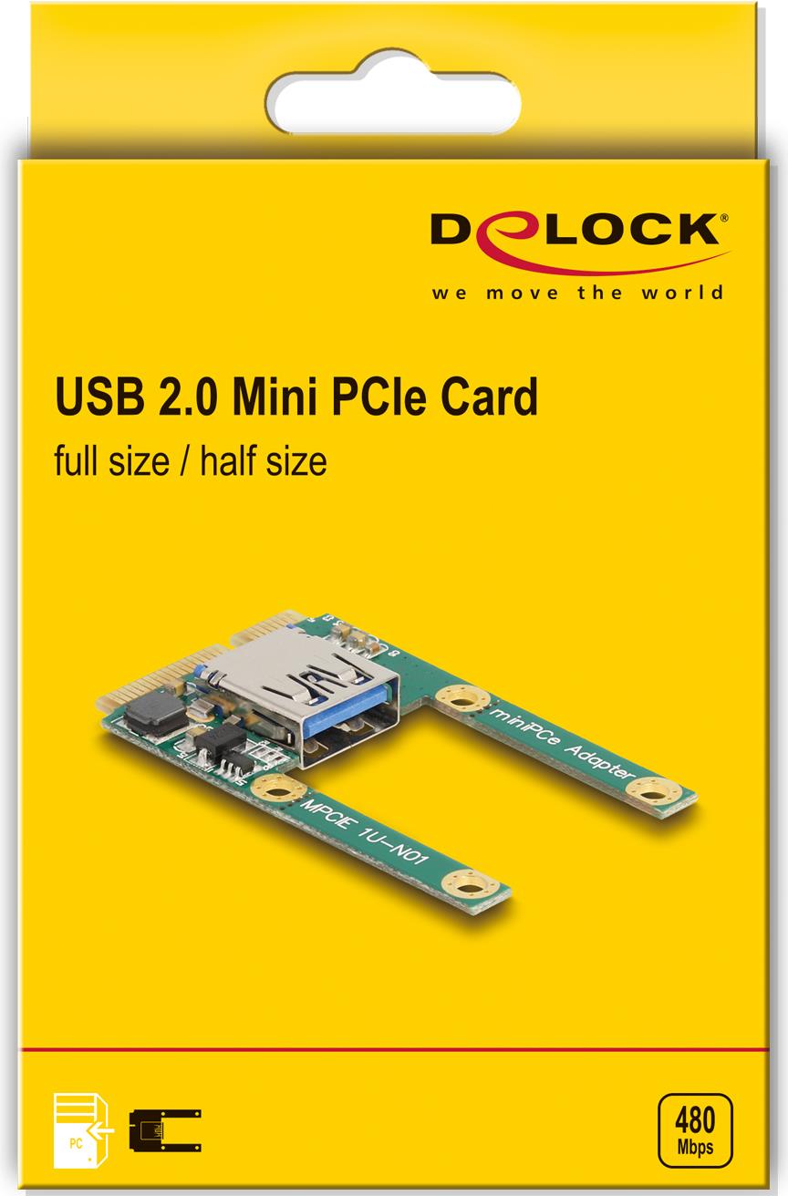 Delock Mini PCIe I/O 1 x USB 2.0 Typ-A Buchse full size / half size (80039)