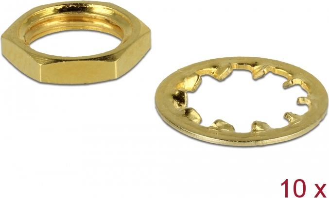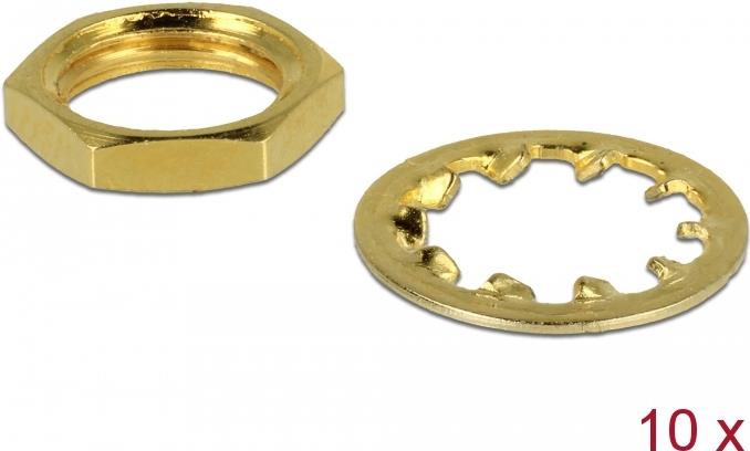 Dieses Set aus Mutter und Sicherungsring von Delock dient der Befestigung einer SMA oder RP-SMA Einbaubuchse.