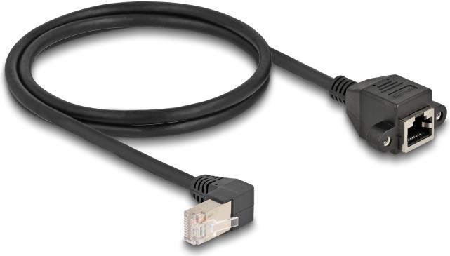 Delock Netzwerk Verlängerungskabel S/FTP Stecker RJ45 Stecker 90° gewinkelt zu RJ45 Einbaubuchse Cat.6A 1 m schwarz (80311)