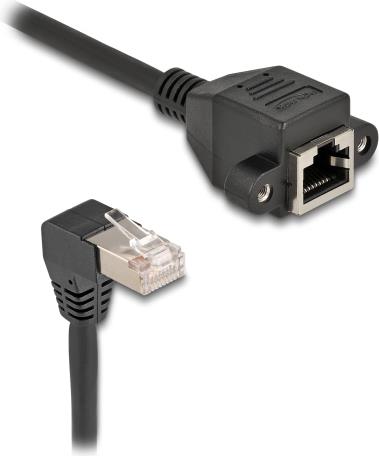 Delock Netzwerk Verlängerungskabel S/FTP Stecker RJ45 Stecker 90° gewinkelt zu RJ45 Einbaubuchse Cat.6A 5 m schwarz (80314)