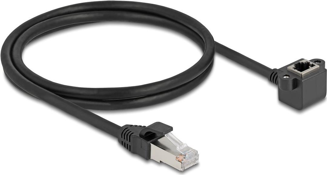 Dieses Netzwerkkabel ist mit RJ-45-Steckern und -Buchsen ausgestattet und verfügt über ein 90°-Winkel-Design, das eine flexible Installation auf engstem Raum ermöglicht. Die mitgelieferten 2 x M3-Schrauben sorgen für zusätzliche Stabilität und eine sichere Verbindung. Das PVC-Mantelmaterial gewährleistet Langlebigkeit, während die 26 American Wire Gauge (AWG) optimale Leistung für Netzwerk-Anforderungen bietet.