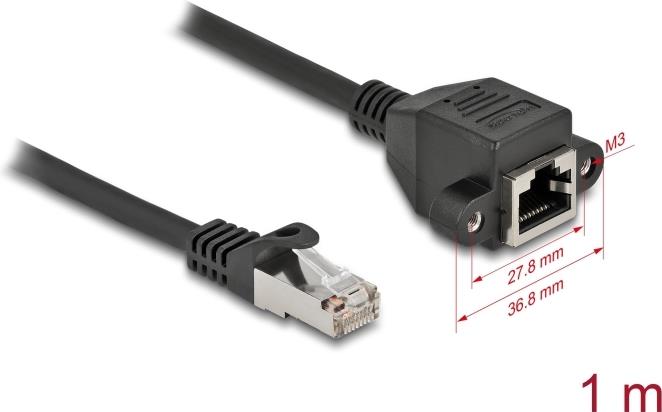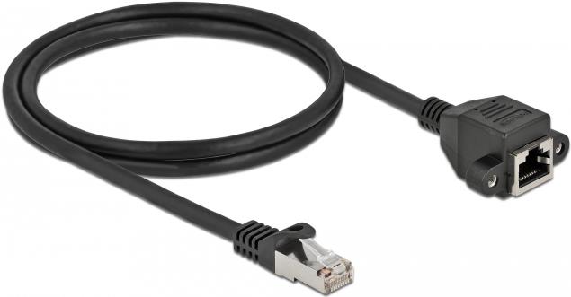 Delock - Netzwerkverlängerungskabel - RJ-45 (M) bis RJ-45 (W) schraubbar - 1,0m - S/FTP - CAT 6a - Schwarz (87001)