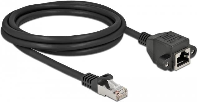 Delock - Netzwerkverlängerungskabel - RJ-45 (M) bis RJ-45 (W) schraubbar - 2,0m - S/FTP - CAT 6a - Schwarz (87002)
