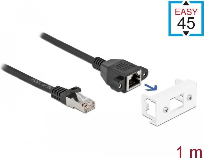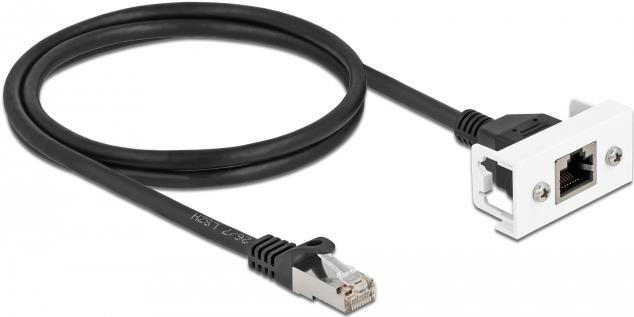Delock - Netzwerkverlängerungskabel - RJ-45 (M) zu RJ-45 (W) Paneel montierbar - 1 m - S/FTP - CAT 6a - halogenfrei, Schnappverschluss - Schwarz / Weiß