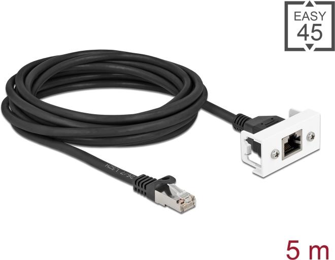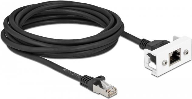 Delock - Netzwerkverlängerungskabel - RJ-45 (M) zu RJ-45 (W) Paneel montierbar - 5,0m - S/FTP - CAT 6a - halogenfrei, Schnappverschluss - Schwarz / Weiß (87123)