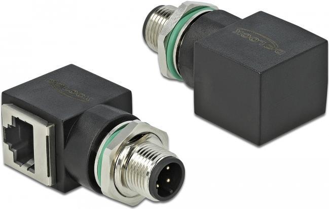 DeLOCK - Netzwerkadapter - M12 (4-polig) (M) gerade bis RJ-45 (W) gewinkelt - CAT 5e - Schwarz (66313)