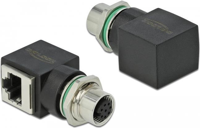 DeLOCK - Netzwerkadapter - 8-polig M12 (W) gerade bis RJ-45 (W) gewinkelt - CAT 6a - Schwarz (66314)