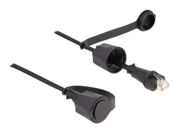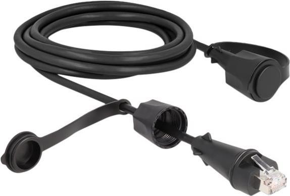 DeLOCK Netzwerkkabel RJ45 Stecker zu RJ45 Stecker Cat.6 STP mit Verschlusskappe Outdoor IP68 staub- und wasserdicht schwarz 3 m (80168)