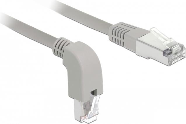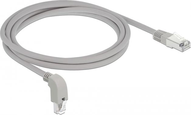 DeLOCK - Patch-Kabel - RJ-45 (M) nach unten gewinkelt bis RJ-45 (M) gerade - 2,0m - S/FTP - CAT 6a - geschirmt, halogenfrei - Grau (85875)
