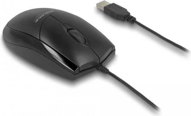 Delock - Maus - leise - rechts- und linkshändig - optisch - 3 Tasten - kabelgebunden - USB - Schwarz - retail - Box (12106)