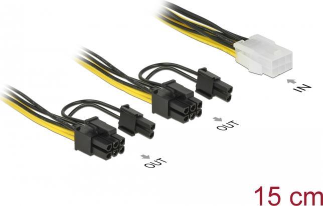 Delock - Stromkabel - 6-poliges PCIe Power (W) bis 8-poliger PCIe Power (6+2) (M) - 12 V - 15 cm - eingerastet (85452)