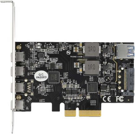 Die PCIe Karte bietet vier externe USB-C Port sowie einen internen USB Typ-A Port. Somit lassen sich Geräte an jedem Anschluss mit 10 Gbps verbinden.