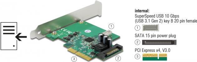 Delock - USB-Adapter - PCIe 3.0 x4 - USB 3.2 Gen 2 (intern) x 1