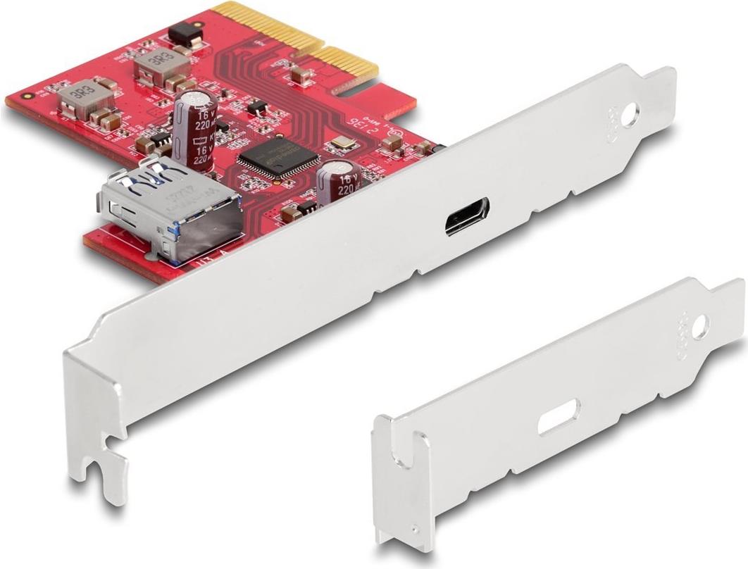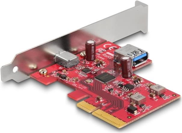 Delock PCI Express x4 Karte zu 1 x extern USB 10 Gbps USB Type-C™ Buchse + 1 x intern USB 10 Gbps Typ-A Buchse - Low Profile Formfaktor (90158)