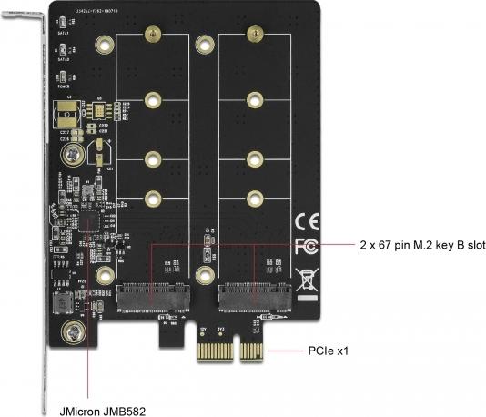 Diese PCI Express Karte von Delock erweitert den PC um zwei M.2 Slots. An die Karte können bis zu zwei M.2 SATA Module im 2280, 2260, 2242, 2230 Format angeschlossen werden. Mit Hilfe des großen Kühlkörpers wird eine ausreichende Kühlung der M.2 Module gewährleistet.