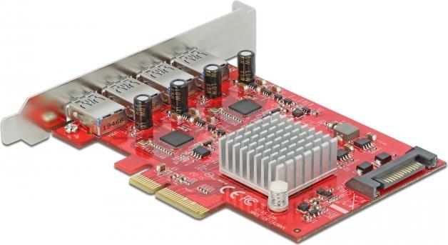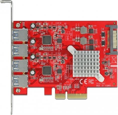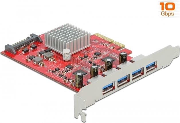 Delock PCI Express x4 Card to 4 x external SuperSpeed USB 10 Gbps (USB 3.2 Gen 2) USB Type-A female - USB-Adapter - PCIe 3.0 x4 - USB 3.2 Gen 2 x 4 |