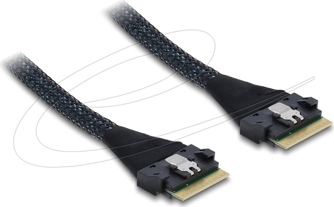 Das Delock 82303 Speicherkabel wurde für zuverlässige Verbindungen in Ihrer internen Konfiguration entwickelt und verfügt über einen Serial Attached SCSI (SAS)-Anschluss. Mit 8i Slim SAS (SFF-8654)-Steckern auf beiden Seiten ermöglicht dieses Kabel eine einfache Installation und stabile Verbindungen. Das Kabel bietet eine Datenübertragungsrate von bis zu 16 Gbit/s und gewährleistet so eine effiziente Leistung Ihrer Systeme. Seine Impedanz von 85 Ohm und sein American Wire Gauge (AWG) von 32 bieten standardisierte Kompatibilität mit verschiedenen Hardwarekonfigurationen.