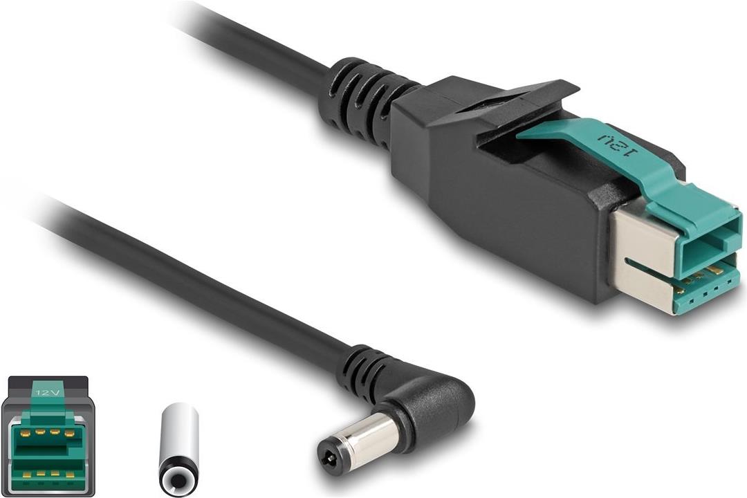Delock PoweredUSB Kabel Stecker 12 V zu DC 5,5 x 2,1 mm Stecker gewinkelt 1 m (80011)