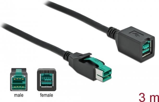 DeLOCK - PoweredUSB extension cable - USB PlusPower (12 V) (M) bis USB PlusPower (12 V) (W) 3,0m - Schwarz (85982)