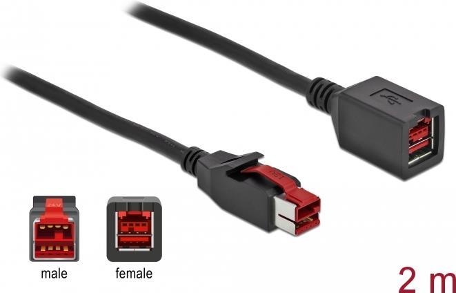 DeLOCK - PoweredUSB extension cable - USB PlusPower (24 V) (M) bis USB PlusPower (24 V) (W) 2,0m - Schwarz (85986)