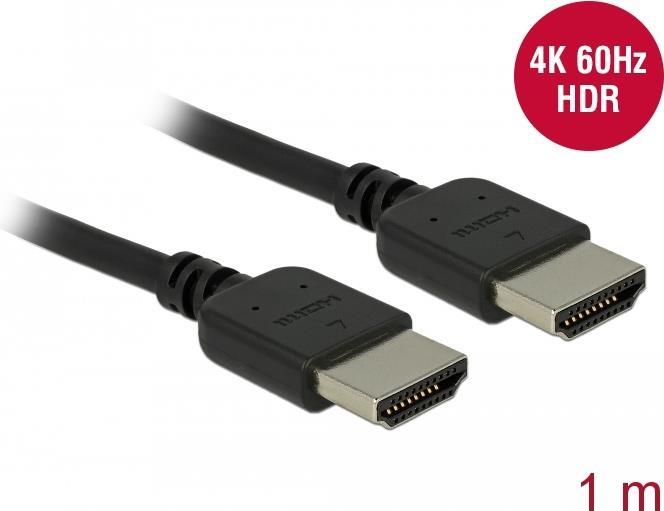 Delock Premium - Premium Highspeed - HDMI-Kabel mit Ethernet - HDMI männlich zu HDMI männlich - 1 m - dreifach abgeschirmtes Twisted-Pair-Kabel - Schwarz - 4K Unterstützung, Dolby DTS-HD Master Audio-Unterstützung