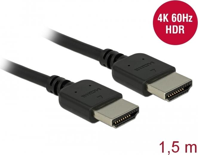 Delock Premium - Premium Highspeed - HDMI-Kabel mit Ethernet - HDMI männlich zu HDMI männlich - 1,5m - dreifach abgeschirmtes Twisted-Pair-Kabel - Schwarz - 4K Unterstützung, Dolby DTS-HD Master Audio-Unterstützung (85216)