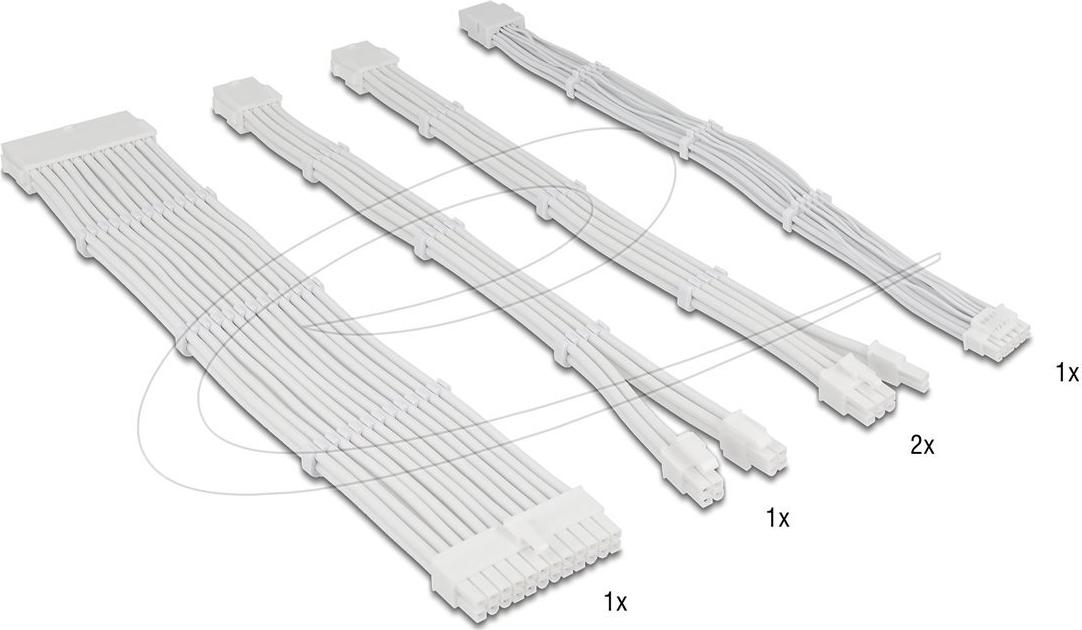 Das Delock-Stromkabel-Set bietet eine Lösung für den Anschluss verschiedener Komponenten innerhalb eines Computersystems. Dieses aus hochwertigen Materialien gefertigte Set enthält zwei Kabel mit einer strapazierfähigen Ummantelung aus Polyethylenterephthalat, die für Isolierung und Flexibilität sorgt. Das Set bietet eine Reihe von Anschlüssen wie 24-polige ATX-Stecker und -Buchsen, 4+4-polige CPU-Anschlüsse und 6+2-polige PCI-Express-Anschlüsse für unterschiedliche Stromversorgungsanforderungen. Dieses Stromkabel-Set trägt zur Aufrechterhaltung stabiler Verbindungen zwischen wichtigen Hardwarekomponenten bei und erhöht so die Systemeffizienz.