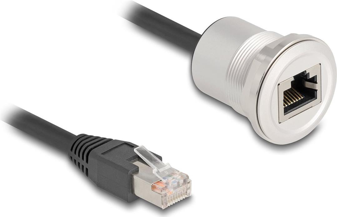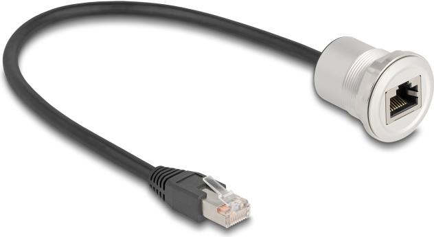 Delock - Netzwerkverlängerungskabel - RJ-45 (M) zu RJ-45 (W) Paneel montierbar - 30cm - 6 mm - STP - CAT 5e - M25 Gewinde - Schwarz/Silber (88187)