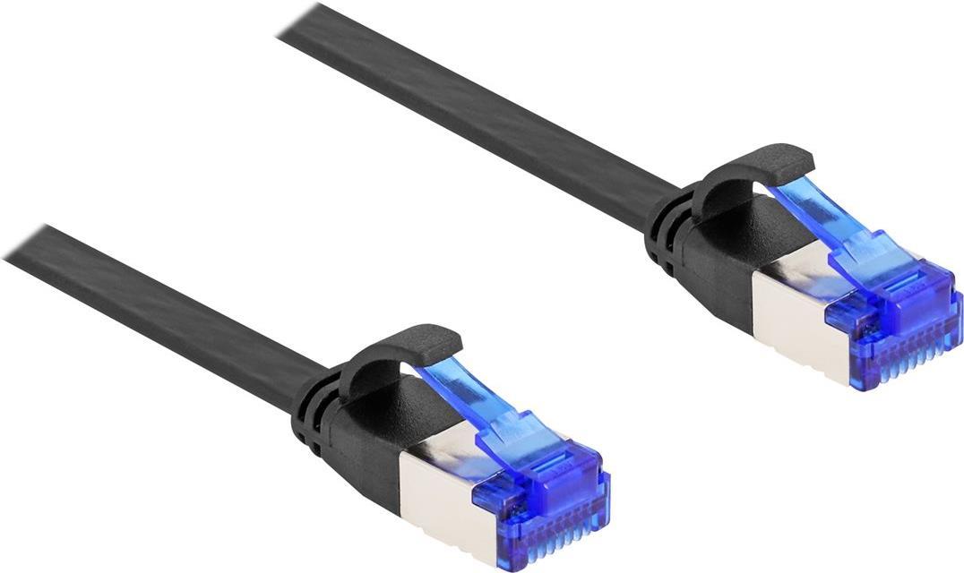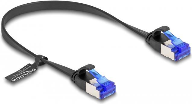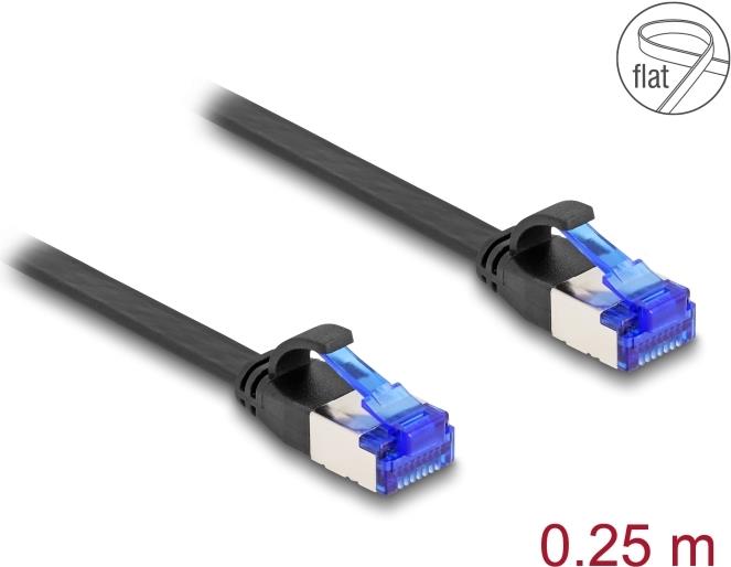 Delock - Patch-Kabel - RJ-45 (M) zu RJ-45 (M) - 25cm - U/FTP - CAT 6a - ohne Haken, flach - Schwarz (80172)