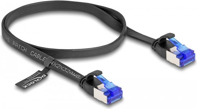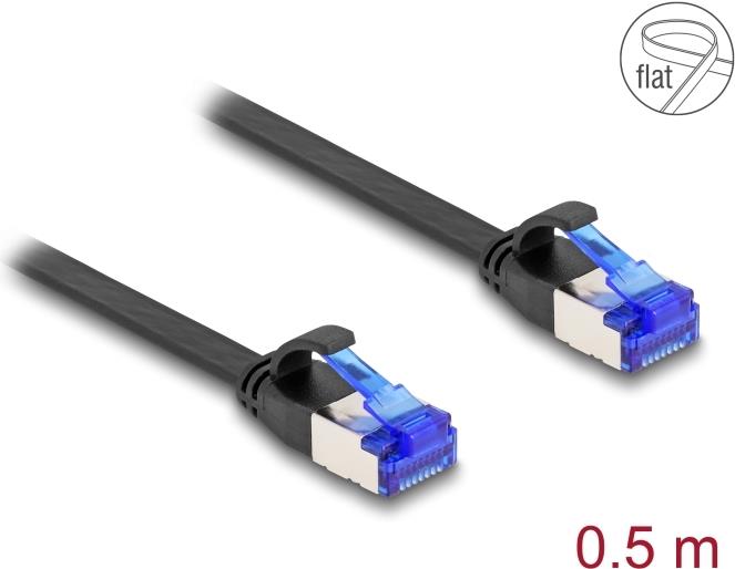 Delock - Patch-Kabel - RJ-45 (M) zu RJ-45 (M) - 50cm - U/FTP - CAT 6a - ohne Haken, flach - Schwarz (80174)