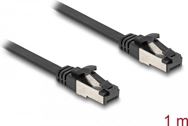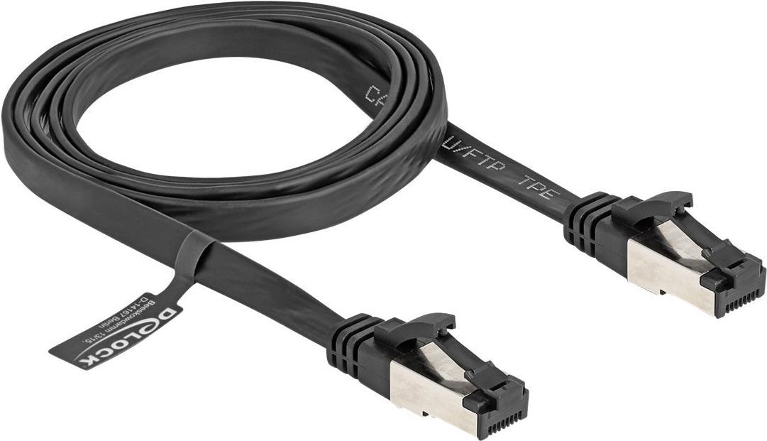 Delock - Patch-Kabel - RJ-45 (M) zu RJ-45 (M) - 1,0m - U/FTP - CAT 8,1 - ohne Haken, flach - Schwarz (80179)