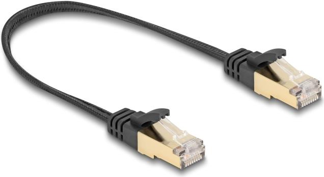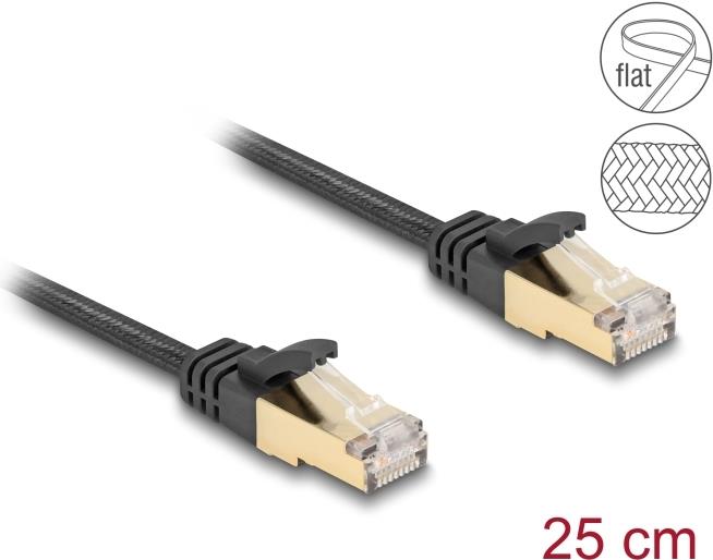 Delock RJ45 Flachband Netzwerkkabel mit Geflechtmantel Cat.6A S/FTP Stecker zu Stecker 0,25 m schwarz (80323)