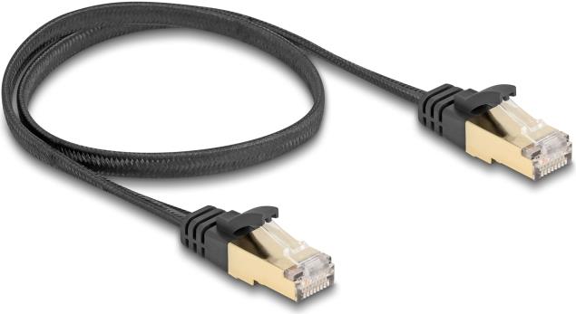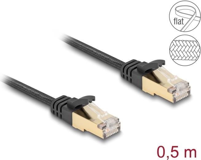 Delock RJ45 Flachband Netzwerkkabel mit Geflechtmantel Cat.6A S/FTP Stecker zu Stecker 0,5 m schwarz (80324)