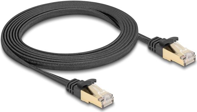 Delock - Patch-Kabel - RJ-45 (M) zu RJ-45 (M) - 2,0m - S/FTP - CAT 6a - ohne Haken, flach, Gewebebeschichtung - Schwarz (80326)