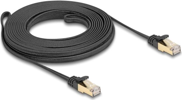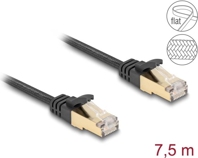 Delock - Patch-Kabel - RJ-45 (M) zu RJ-45 (M) - 7,5m - S/FTP - CAT 6a - ohne Haken, flach, Gewebebeschichtung - Schwarz (80329)