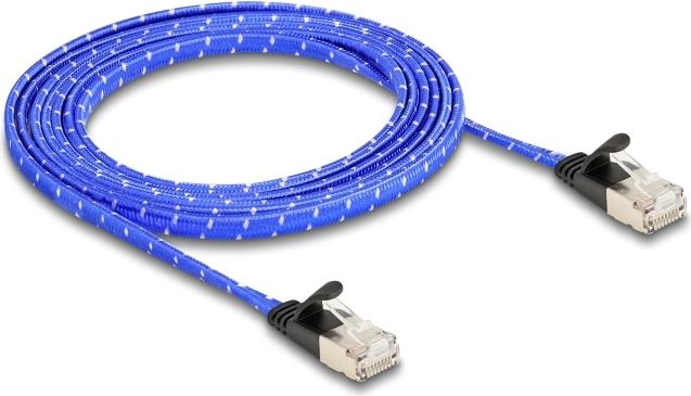 Delock - Netzwerkkabel - RJ-45 (M) zu RJ-45 (M) - 2,0m - U/FTP - CAT 6a - ohne Haken, flach, Gewebebeschichtung - Blau (80384)