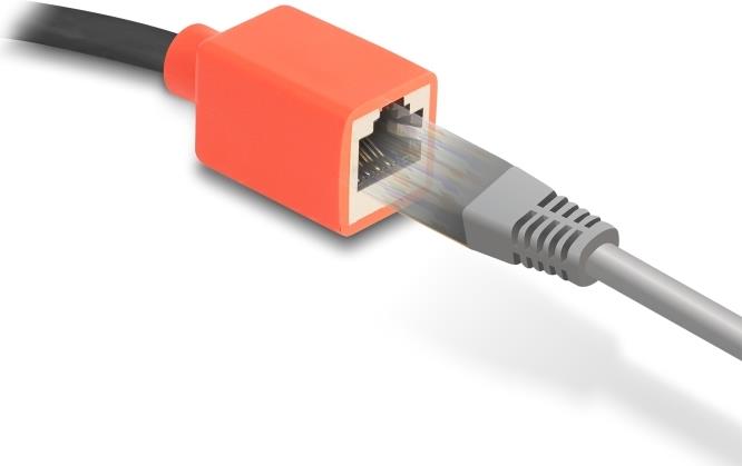 Delock - Netzwerkadapter - RJ-45 (W) zu RJ-45 (M) - 20cm - S/FTP - CAT 6a - Schutzadapter, ohne Haken, Zugfestigkeit 10 N/kg - Schwarz / Rot (88197)