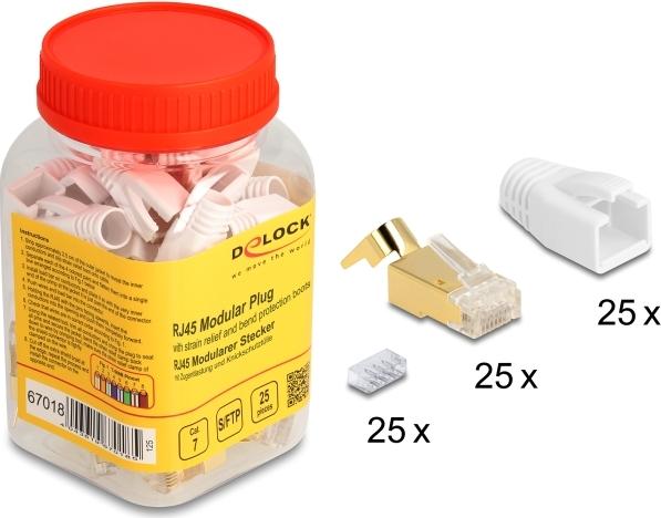 Delock - Netzwerkanschluss - RJ-45 (M) - S/FTP -Cat.7 Rohkabel - rund, ohne Haken (Packung mit 25) (67018)