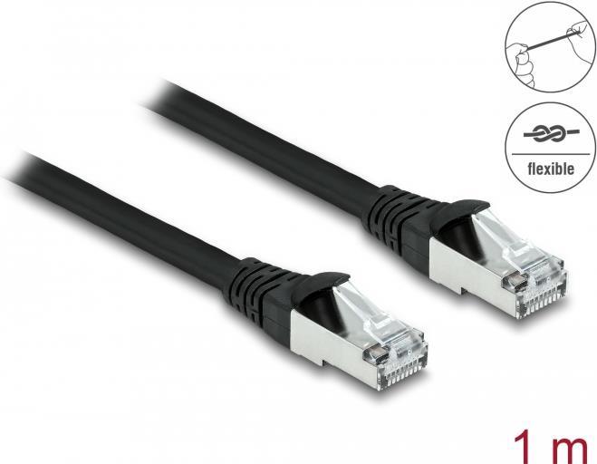 Delock - Patch-Kabel - RJ-45 (M) zu RJ-45 (M) - 1 m - 6 mm - S/FTP - CAT 6a - im Freien - Schwarz