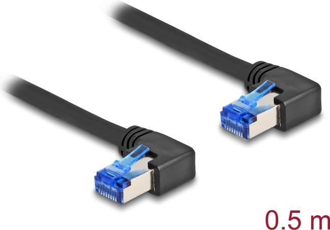 Delock - Netzwerkkabel - RJ-45 (M) nach rechts abgewinkelt zu RJ-45 (M) nach rechts abgewinkelt - 50cm - 6 mm - S/FTP - CAT 6a - halogenfrei - Schwarz (80213)