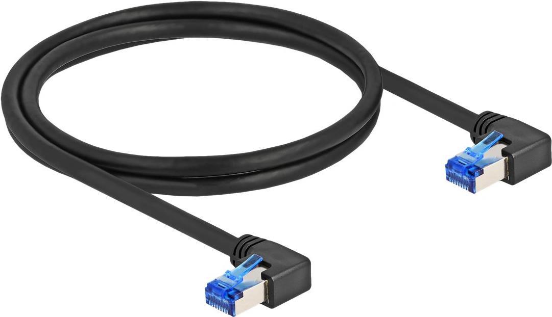 Delock - Patch-Kabel - RJ-45 (M) rechtwinklig zu RJ-45 (M) rechtwinklig - 1,0m - 6 mm - S/FTP - CAT 6a - geschirmt, halogenfrei - Schwarz (80214)