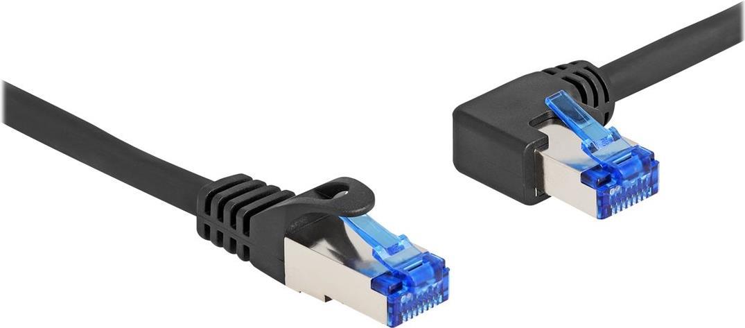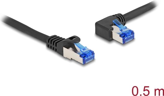 Delock - Netzwerkkabel - RJ-45 (M) gerade zu RJ-45 (M) links abgewinkelt - 50cm - 6 mm - S/FTP - CAT 6a - halogenfrei, ohne Haken - Schwarz (80217)