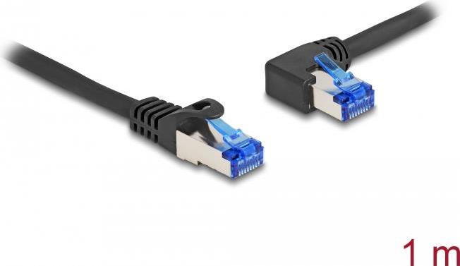 Delock - Netzwerkkabel - RJ-45 (M) gerade zu RJ-45 (M) links gewinkelt - 1,0m - 6 mm - S/FTP - CAT 6a - halogenfrei, ohne Haken - Schwarz (80218)