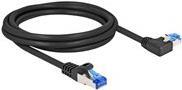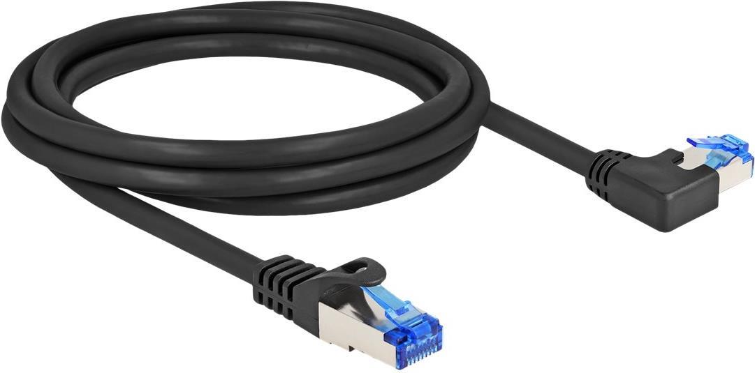 Delock - Patch-Kabel - RJ-45 (M) gerade zu RJ-45 (M) links gewinkelt - 2,0m - 6 mm - S/FTP - CAT 6a - geschirmt, halogenfrei, ohne Haken - Schwarz (80219)