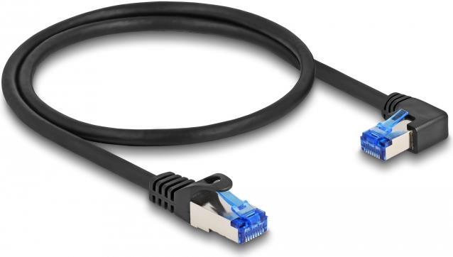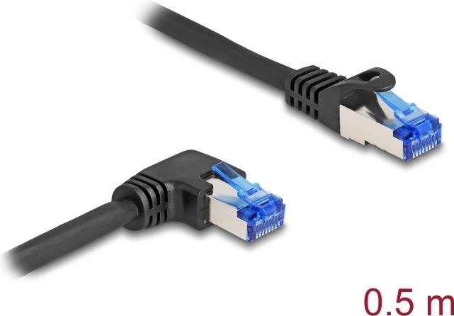 Delock - Netzwerkkabel - RJ-45 (M) gerade zu RJ-45 (M) rechtwinklig - 50cm - 6 mm - S/FTP - CAT 6a - halogenfrei, ohne Haken - Schwarz (80221)